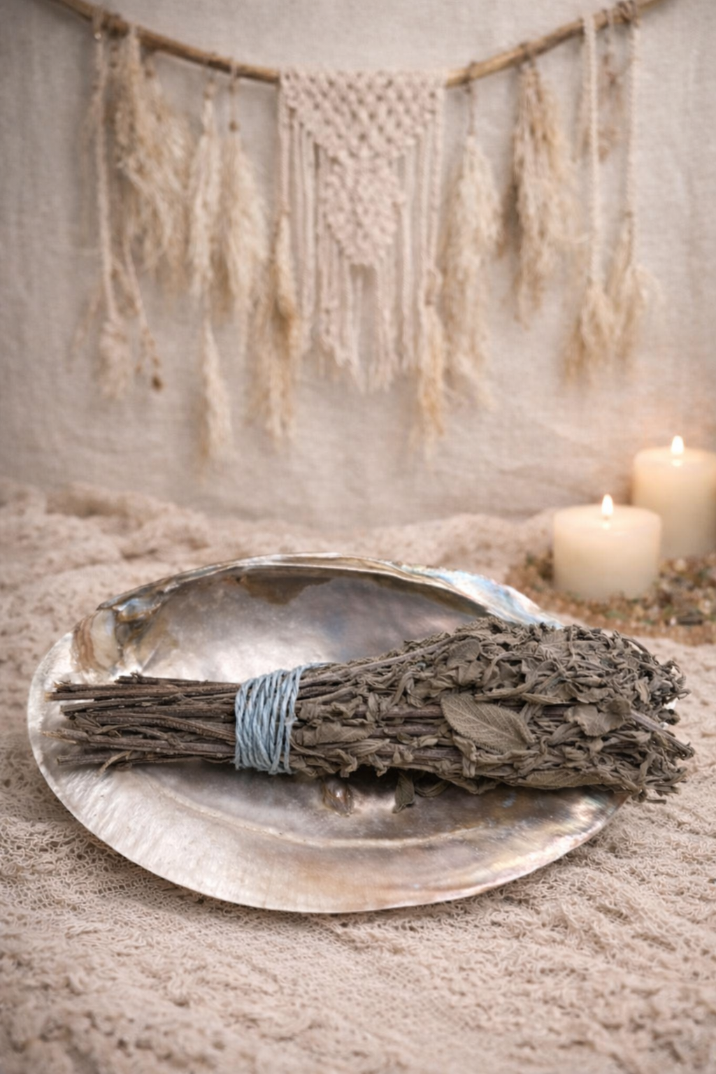 Toprak (adaçayı), Su (istiridye kabuğu), Ateş (tütsüyü yakın) ve Hava (doğada bulduğunuz bir kuş tüyü ile tütsünün dumanını savurun)
