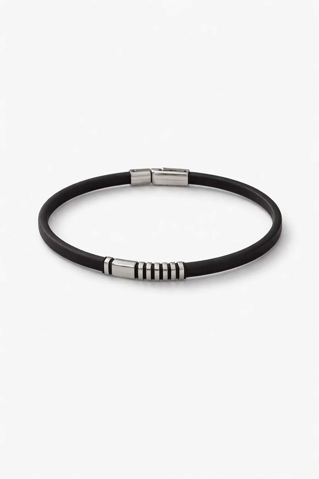 Çelik Detaylı Siyah Deri Erkek Bileklik