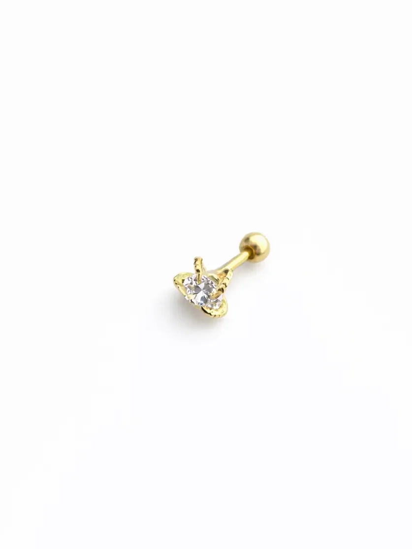 Minimal ışıltısıyla öne çıkan bu 925 ayar gümüş üzeri altın kaplama piercing, zarif ve modern tasarımıyla günlük kullanıma uygundur. Zamansız formu ile her stile kolayca uyum sağlar.