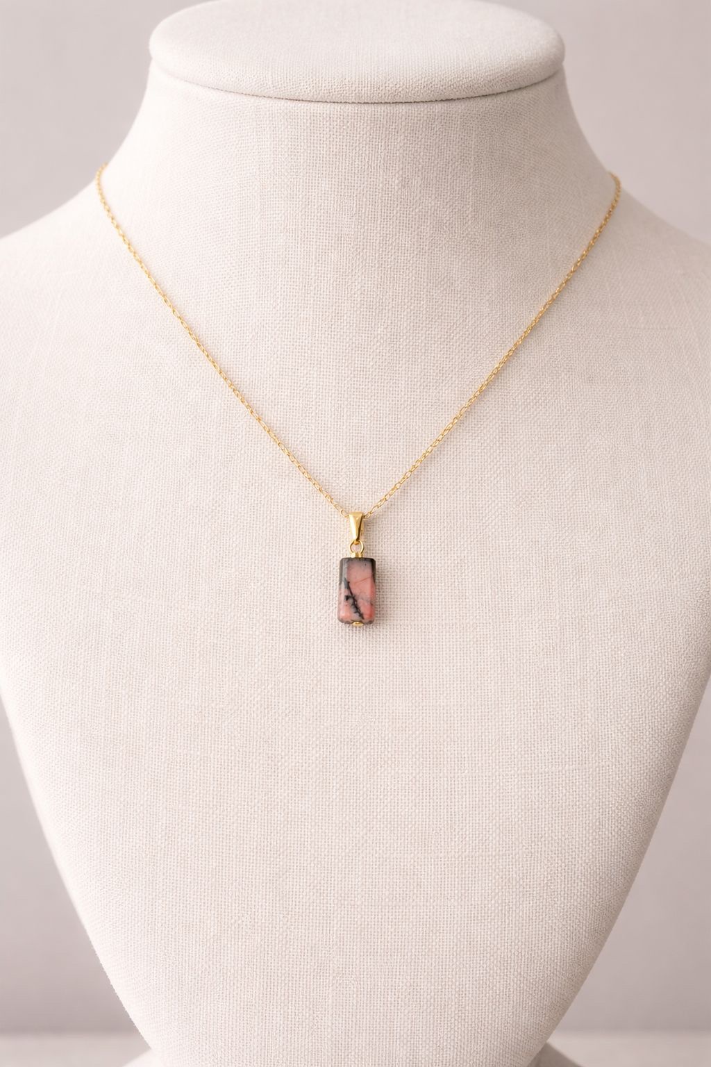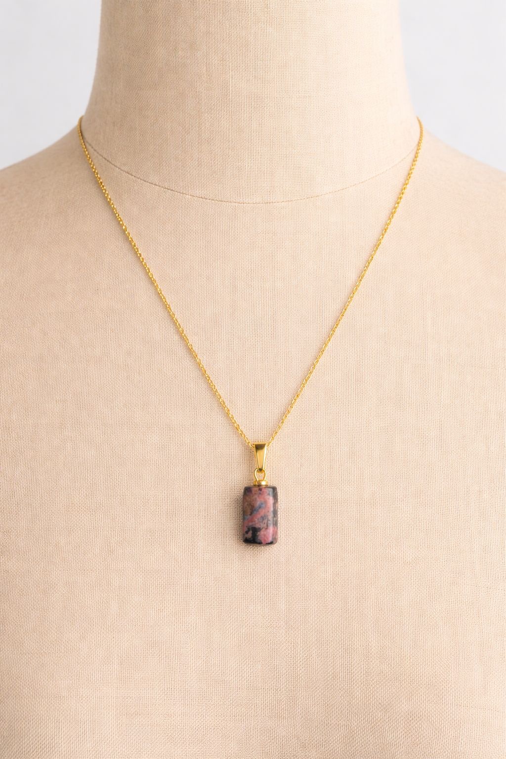 RODONİT KOLYE SİLİNDİR FORM ALTIN KAPLAMA