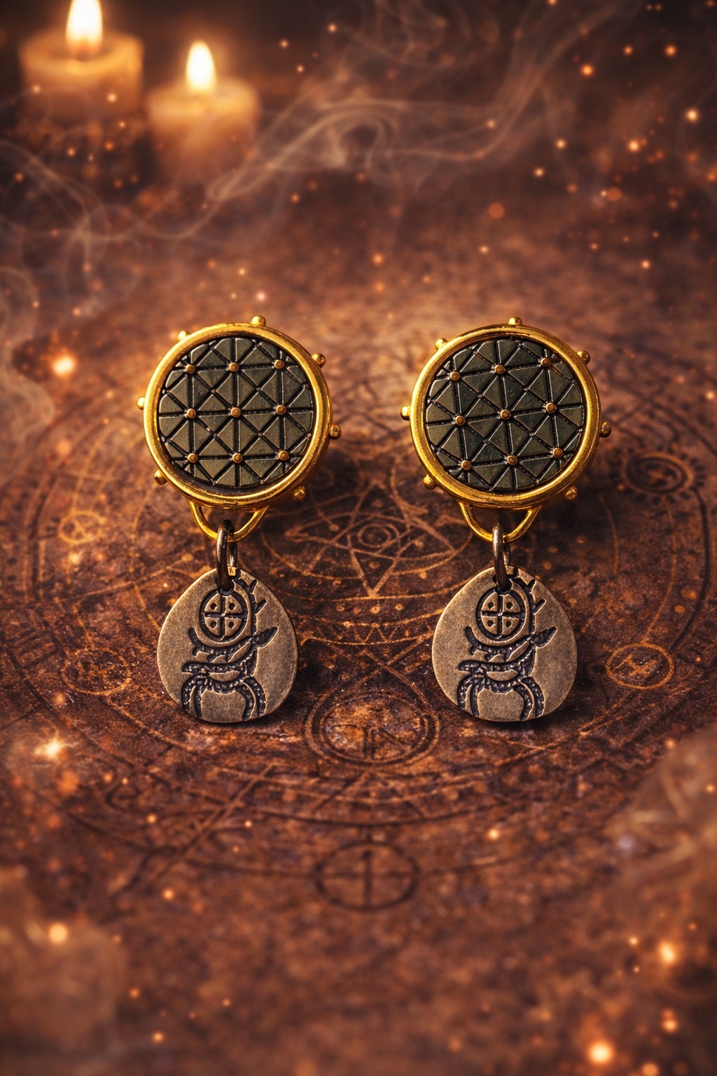 SCARAB YAŞAM ÇİÇEĞİ KÜPE | 925 AYAR GÜMÜŞ ÜZERİ KARARTMA VE ALTIN KAPLAMA