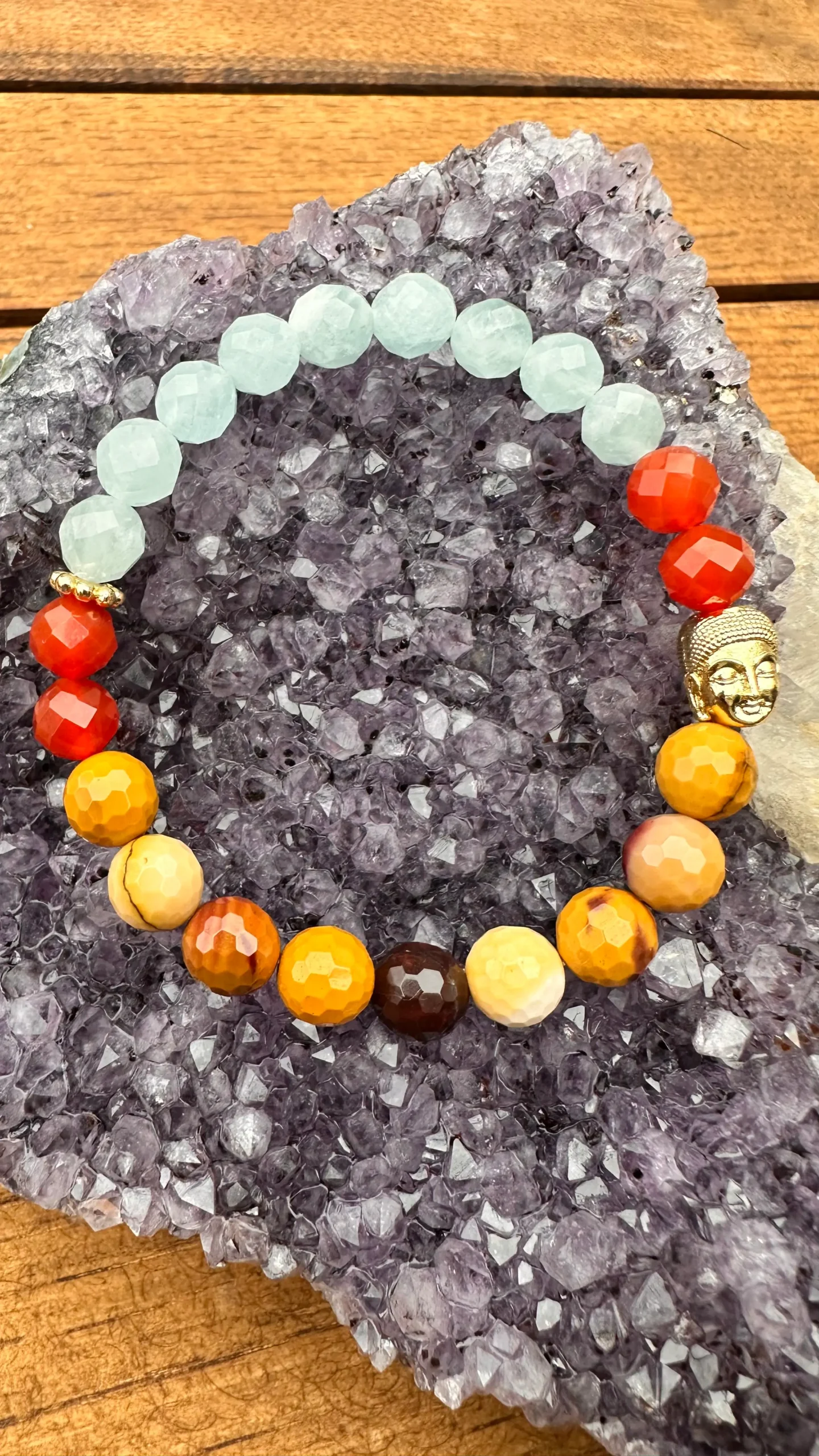 Formulünde, amazonit, karnelyan ve mokait jasper taşlarının bir arada kullanıldığı bu özel Theta bilekliği, kadınlar için özenle tasarlandı.